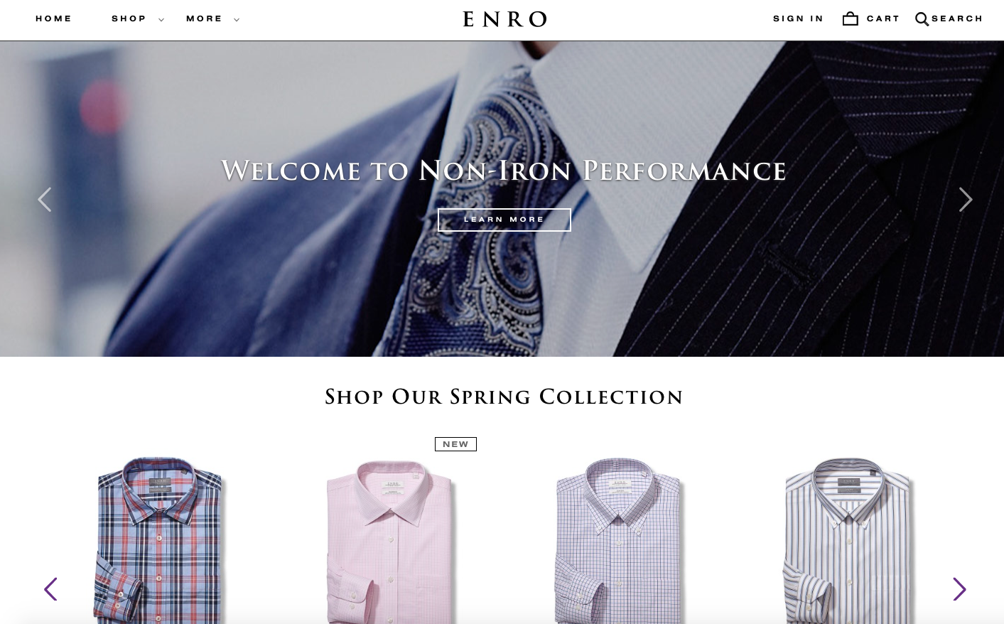 Re-branding all web copy for men’s shirt designer Enro. Creating a modern, sophisticated and tongue-in-cheek tone of voice to appeal to the modern middle-aged man, to be used across a new website and with new product descriptions.